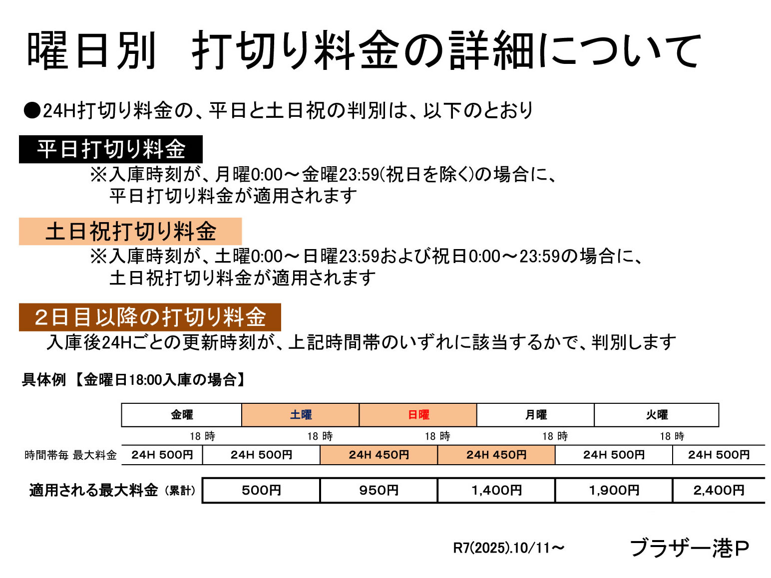 【料金変更のお知らせ:2025.10.11より、24時間打切(平日・土日祝)の料金を改定しました。】