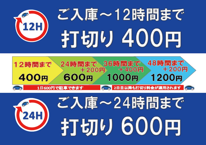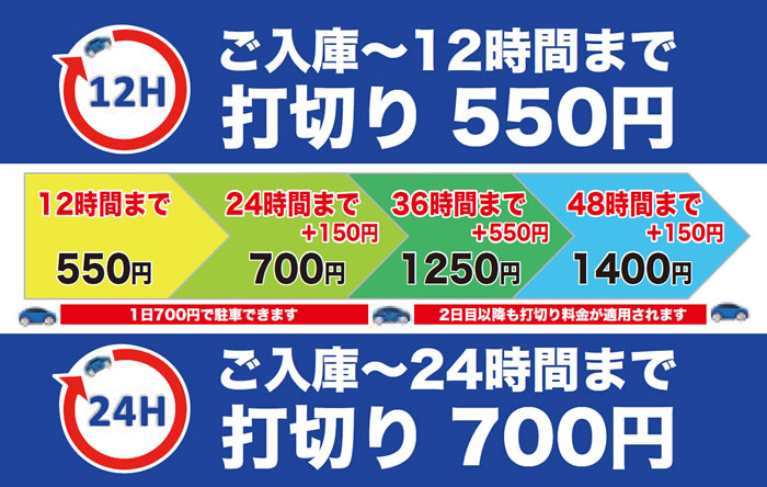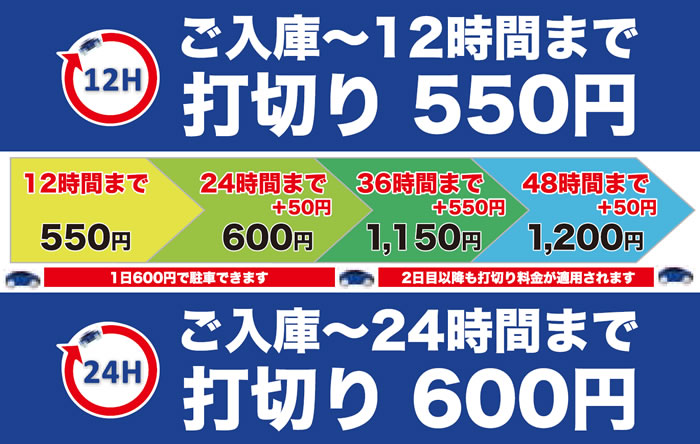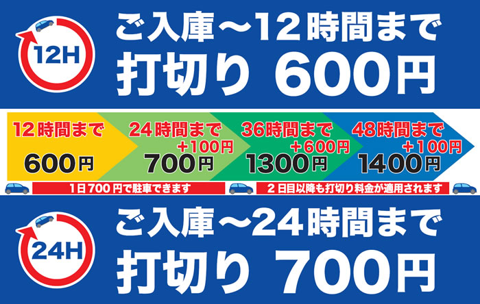 【料金変更のお知らせ:2025.2.28より、24時間打切の料金・昼間の時間体系を改定しました。】